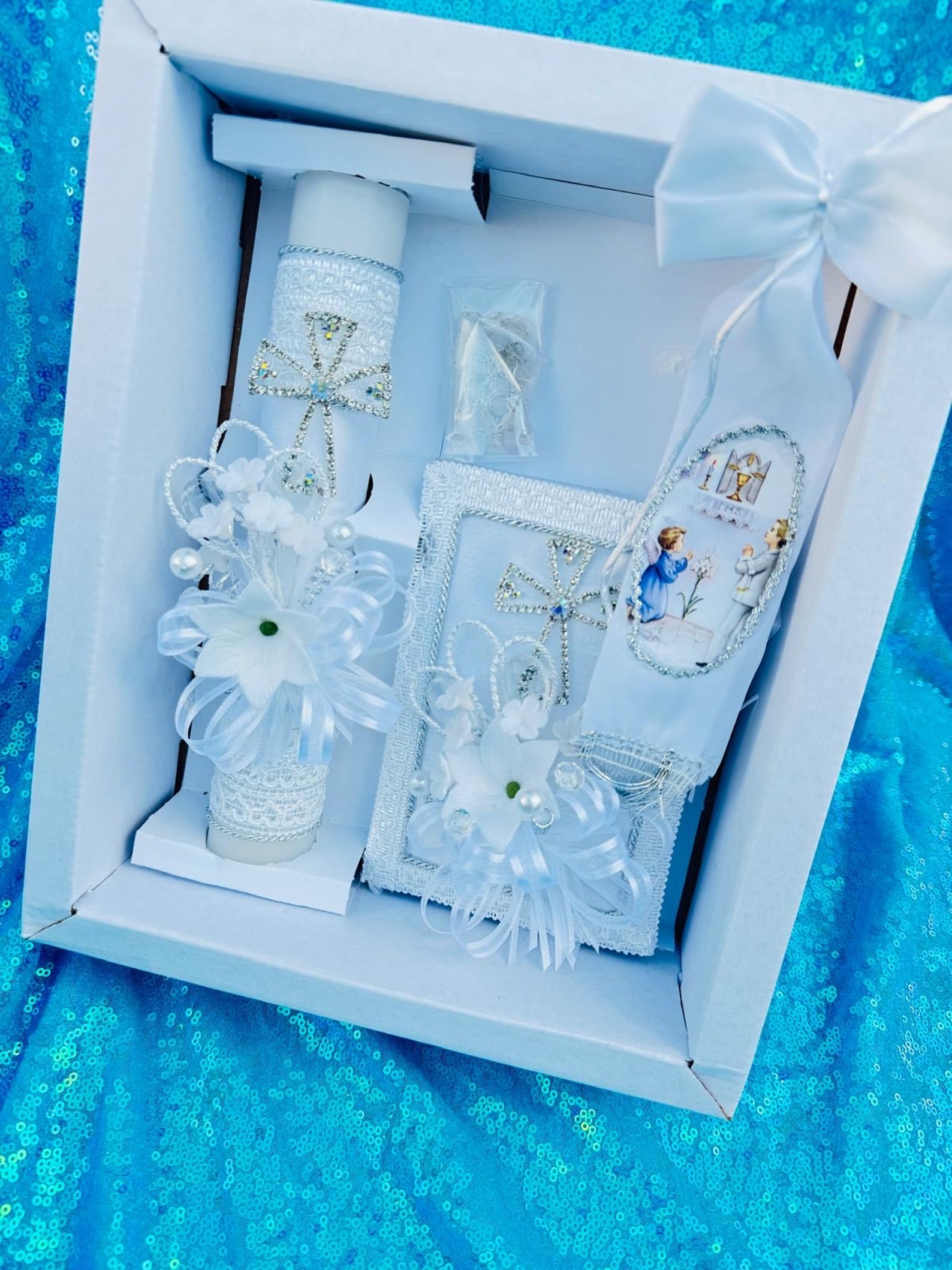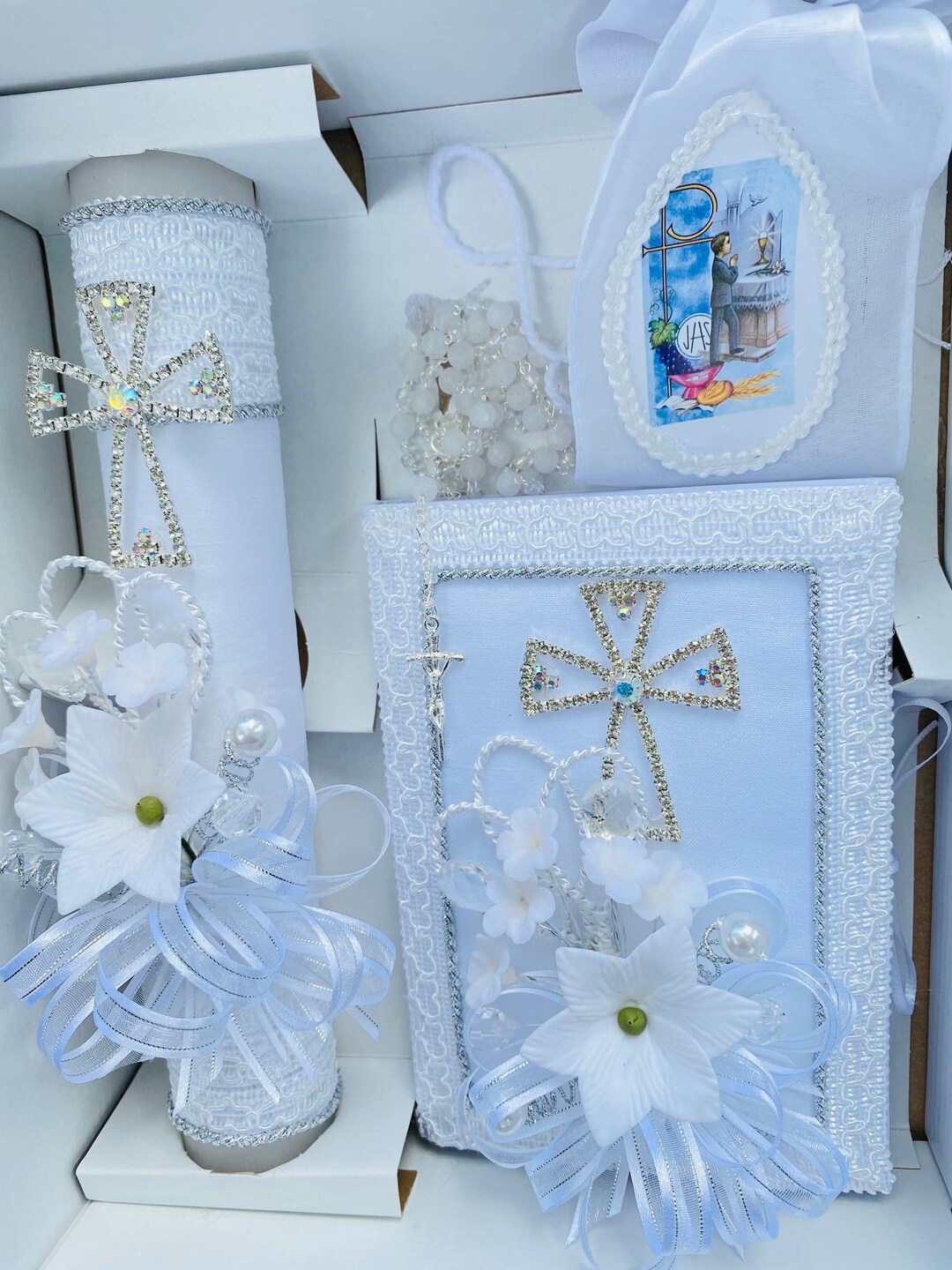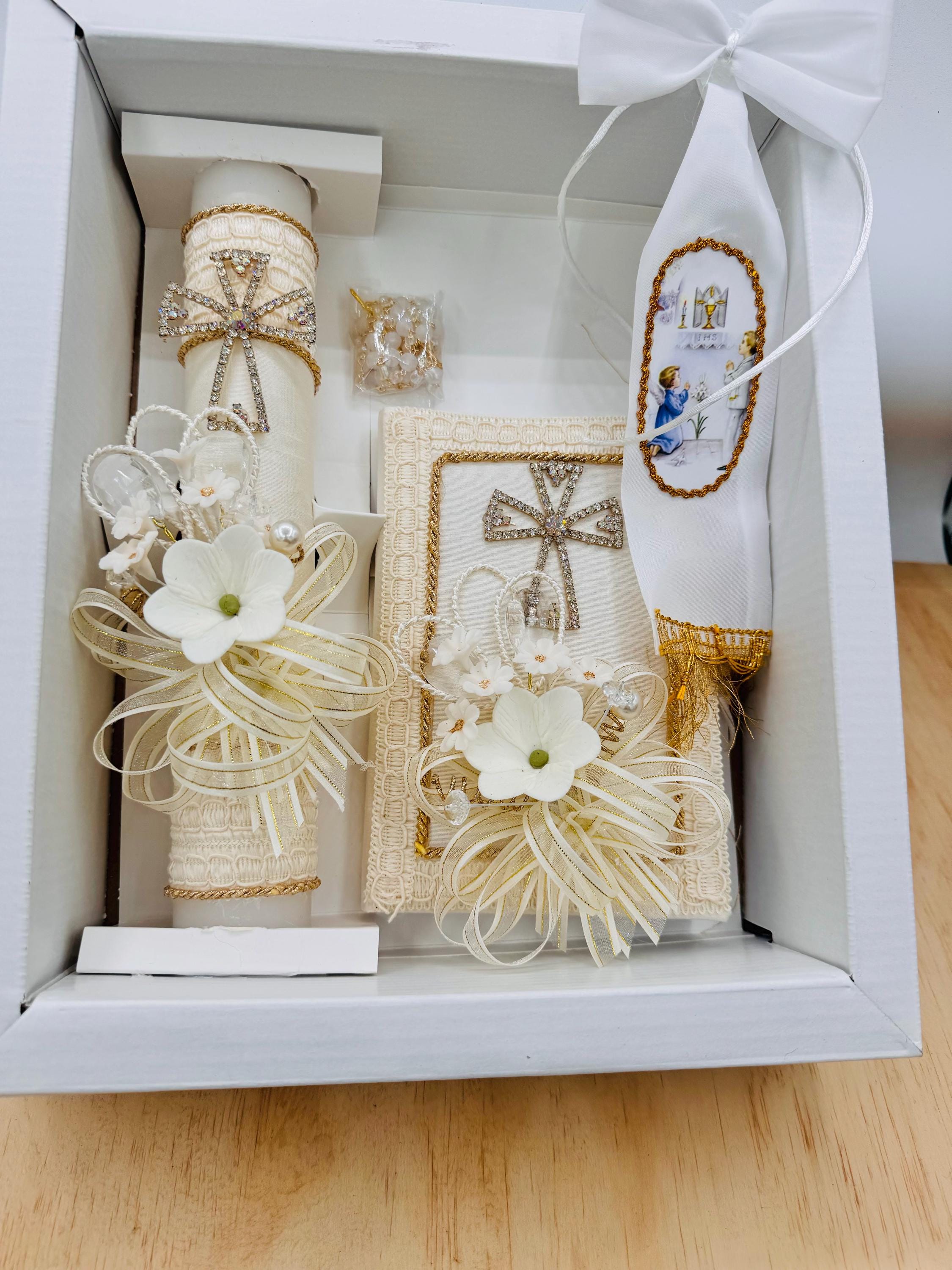Elegant First Communion Candle Set, Rosary & Prayer Book (4pcs) - Etsy
