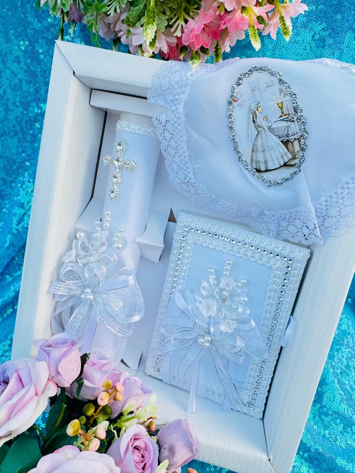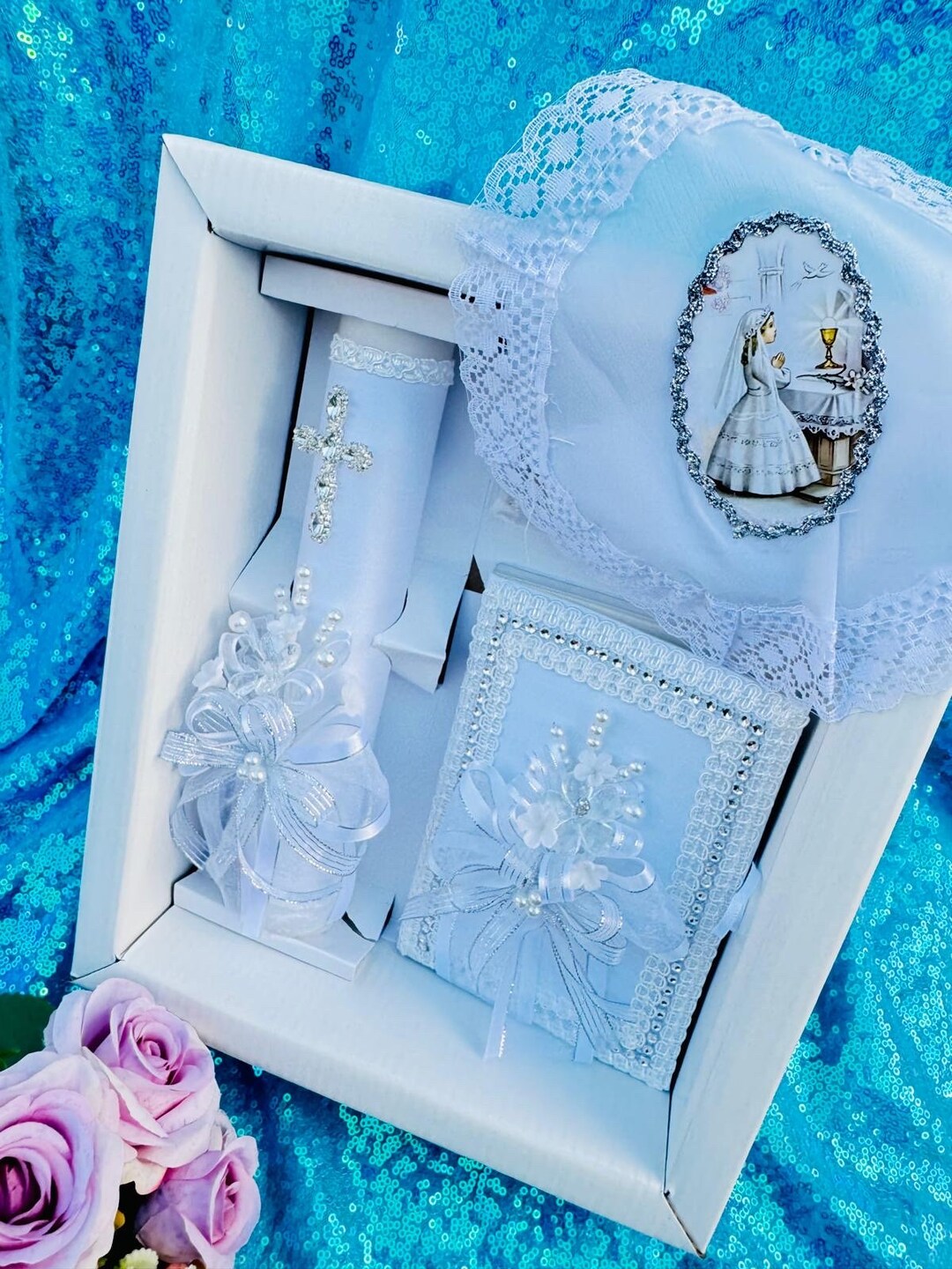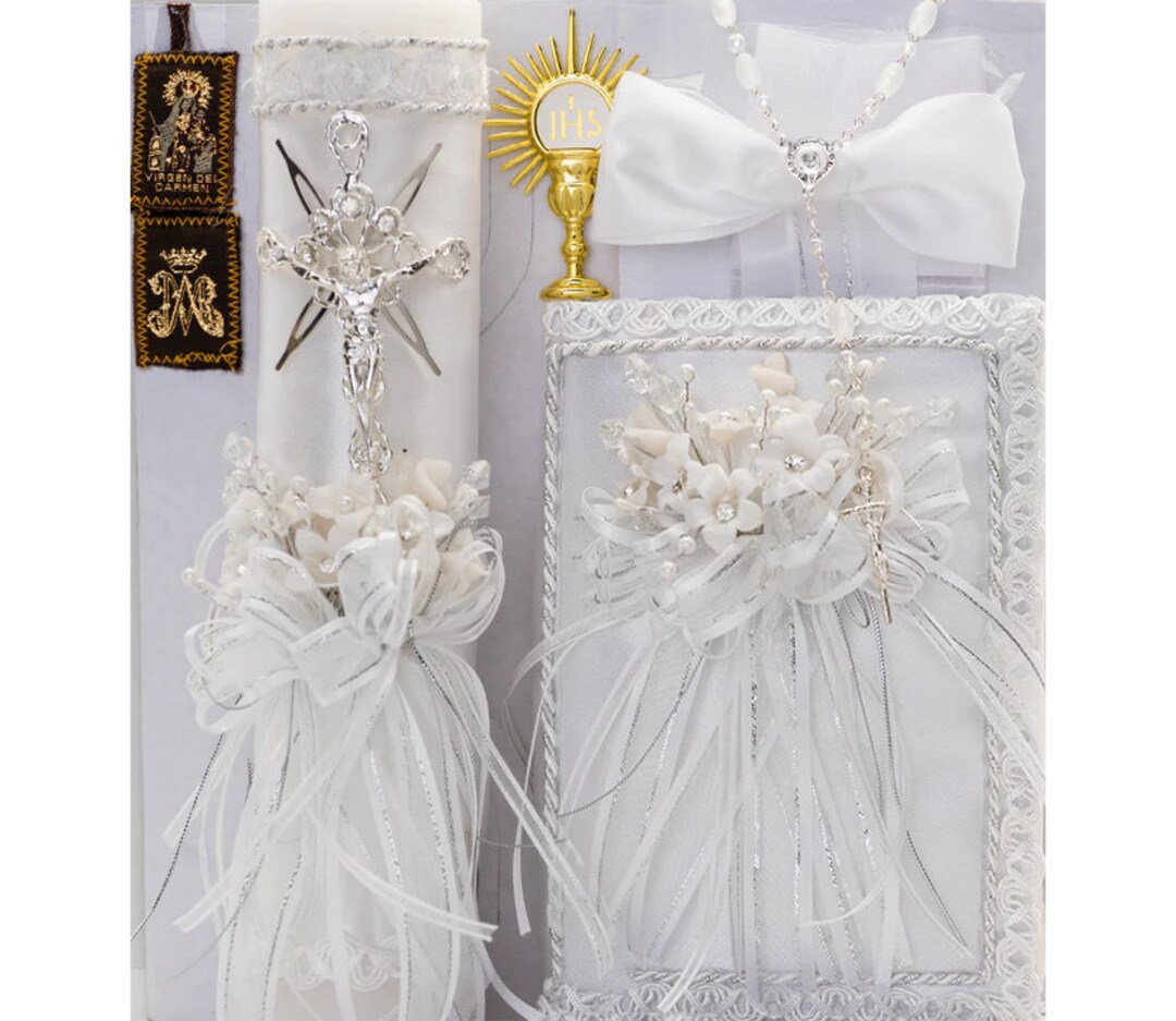Elegant First Communion Set: Candle, Rosary, Prayer Book (spanish ...