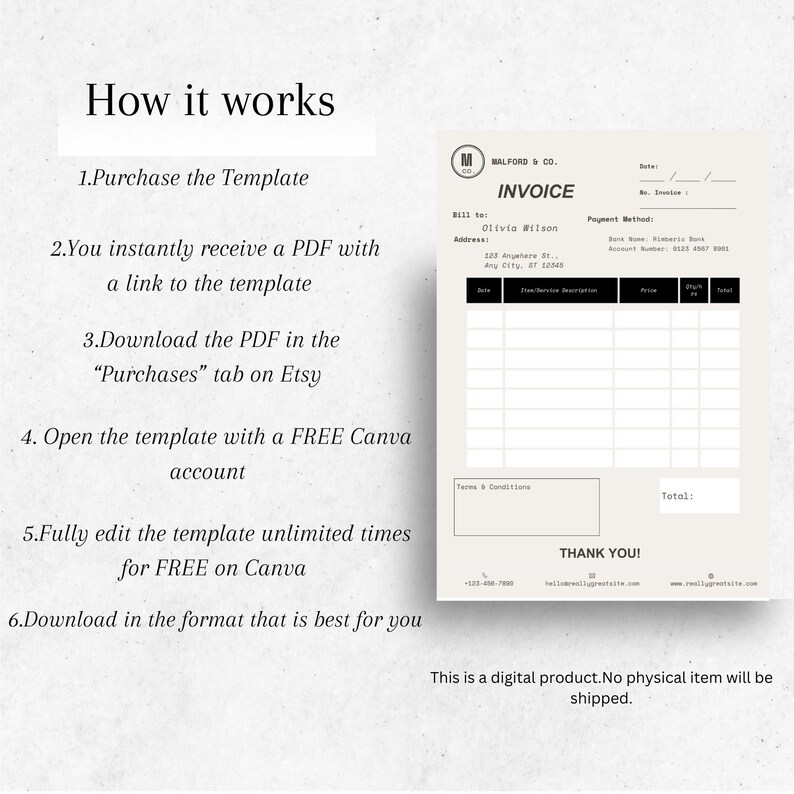 Invoice Template Editable, Editable Canva Business Template, Small ...