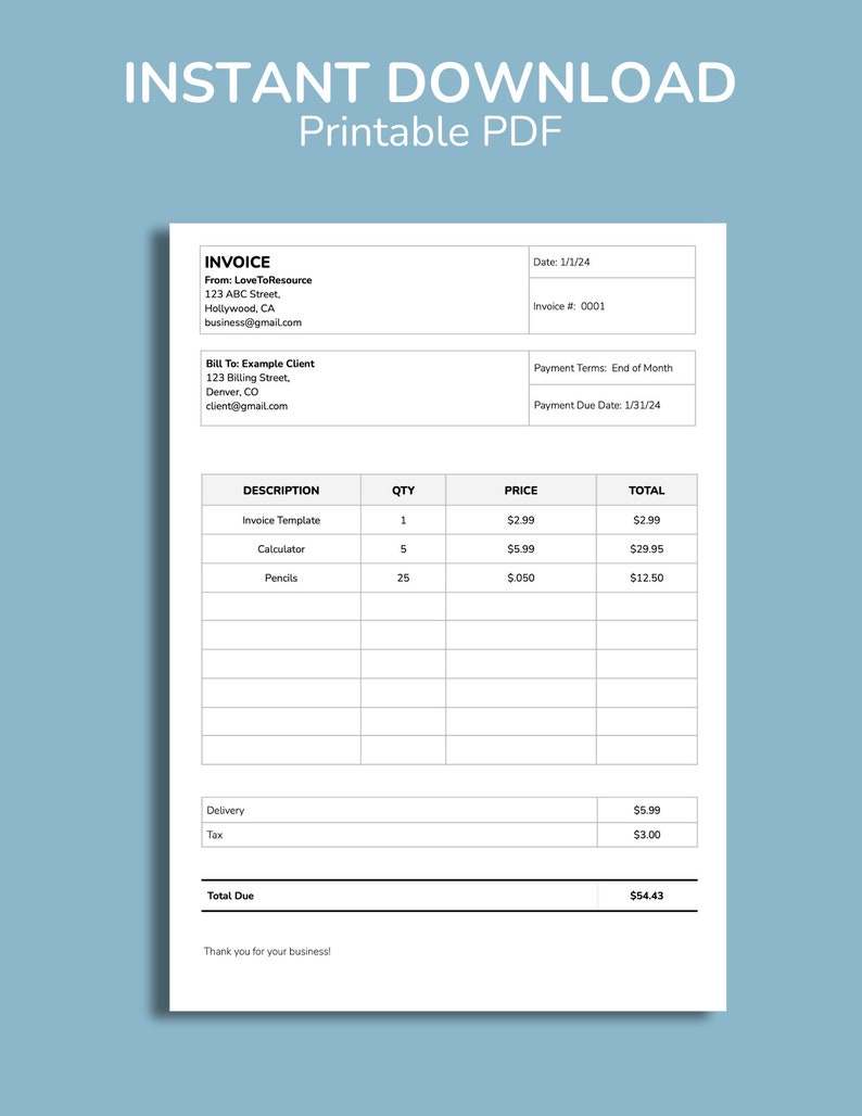 Invoice Template | Printable A4 & Letter PDF Invoice - Etsy