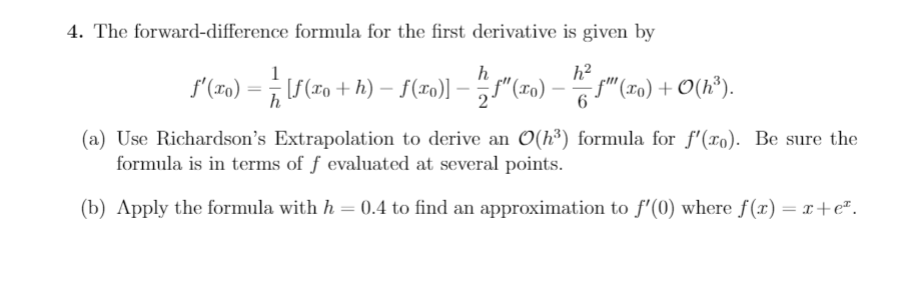 Solved 4. The forward-difference formula for the first | Chegg.com