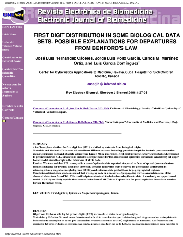 (PDF) First Digit Distribution in Some Biological Data Sets. Possible ...