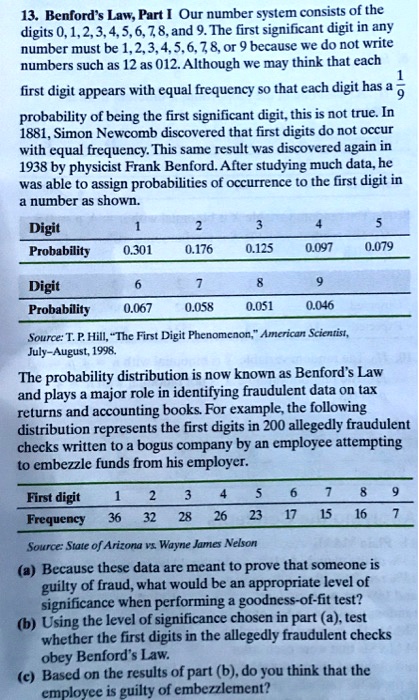 SOLVED:Benford s Law, Purt [ Our number system consists of the digits 0 ...