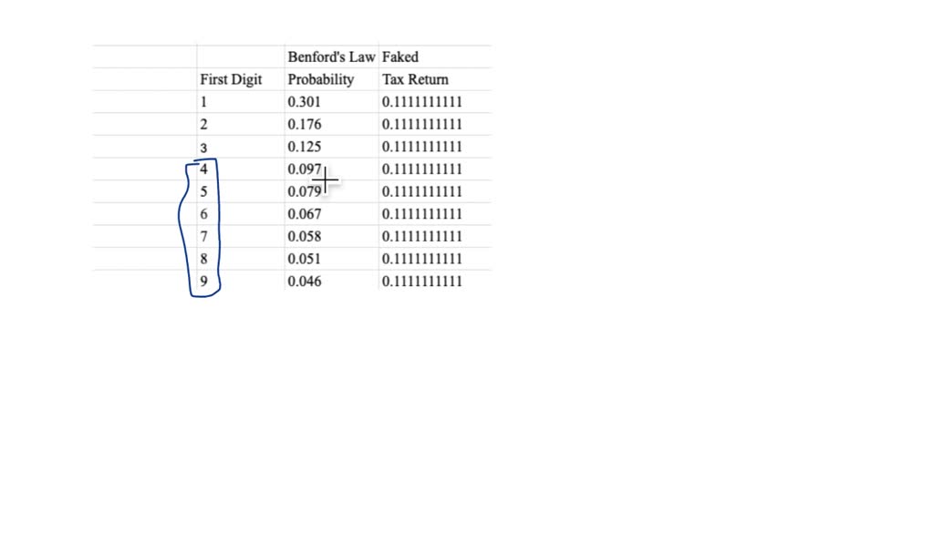 Solved: 2) Benford’s law distribution Faked numbers in tax returns ...