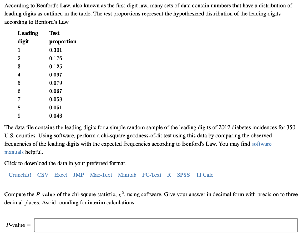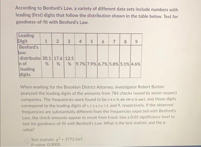 Solved Benford's law (also known as the first-digit law) | Chegg.com