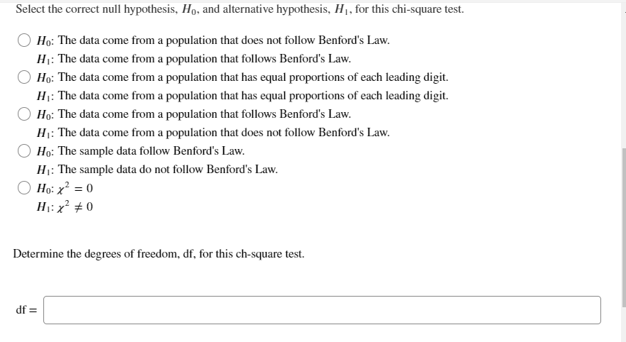 Solved Benford's Law concerns the first digits of numbers in | Chegg.com