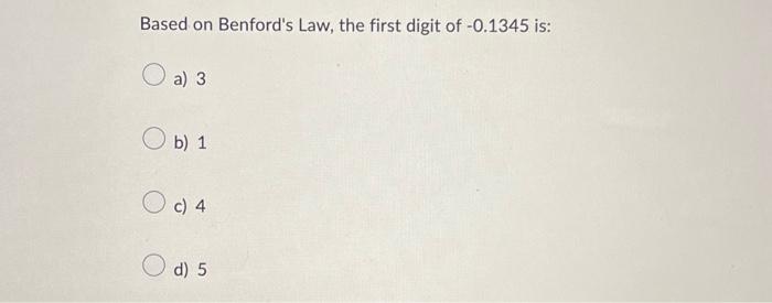 Solved Based on Benford's Law, the first digit of -0.1345 | Chegg.com