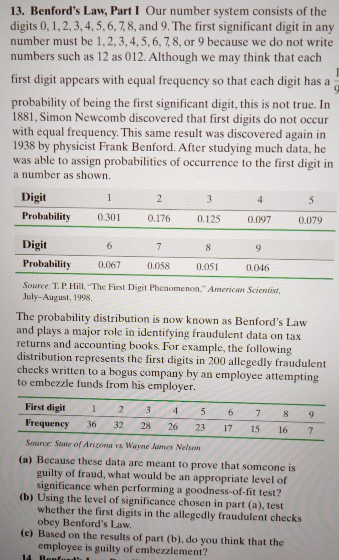 Solved 13. Benford's Law, Part I Our number system consists | Chegg.com