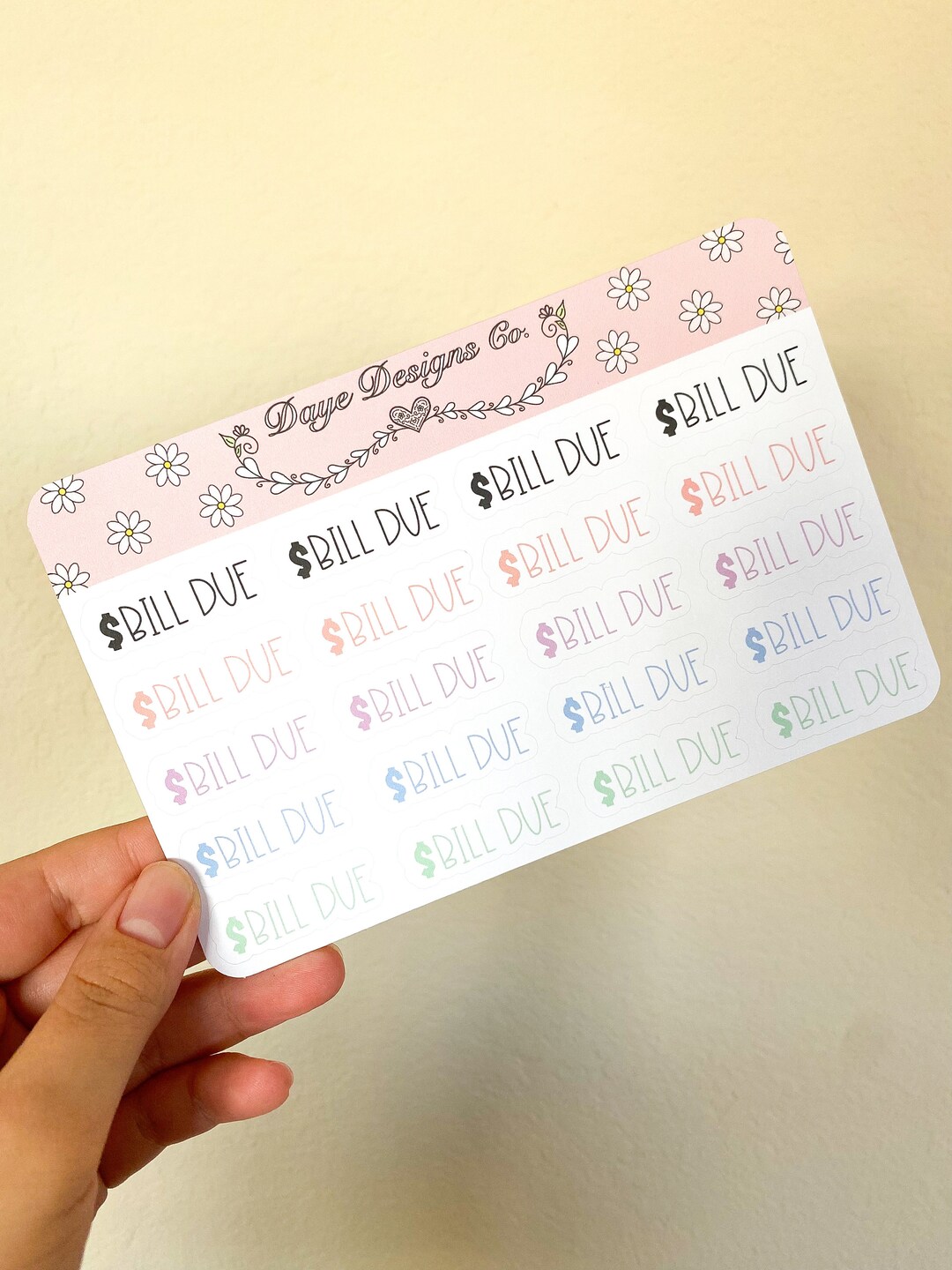 Bill Due Stickers | Matte Planner Stickers | Bugeting Stickers - Etsy