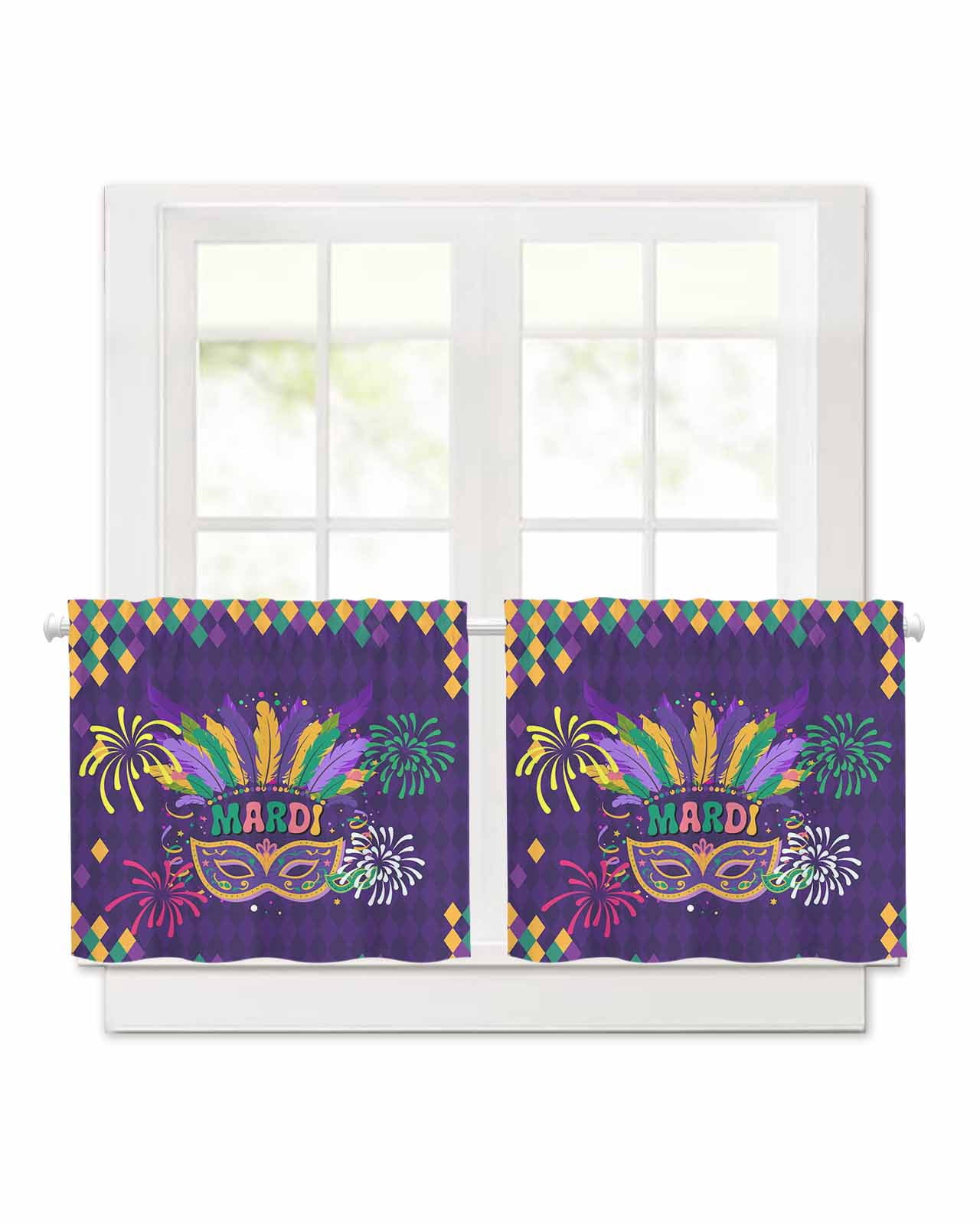 Carnival Short Blackout Curtains 24 Inch Long Mask Feathers Firework ...