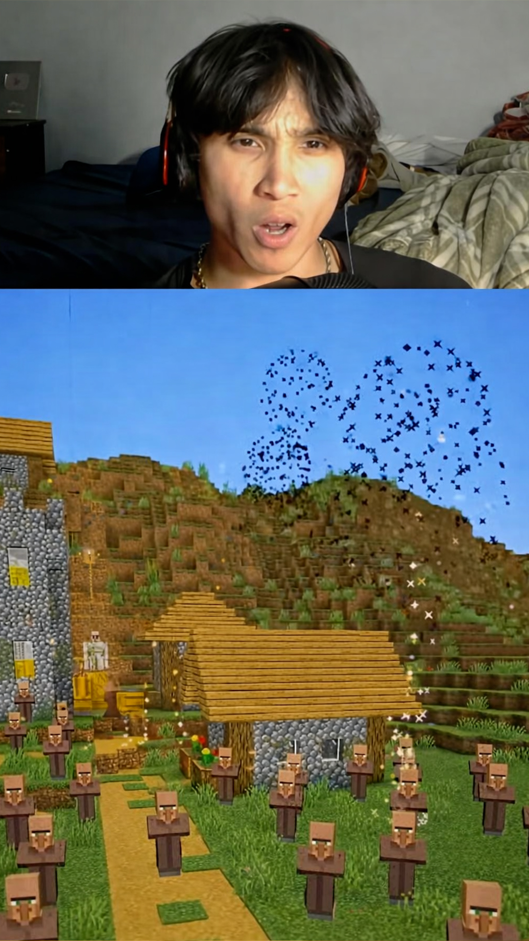 Minecraft villager celebration with fireworks