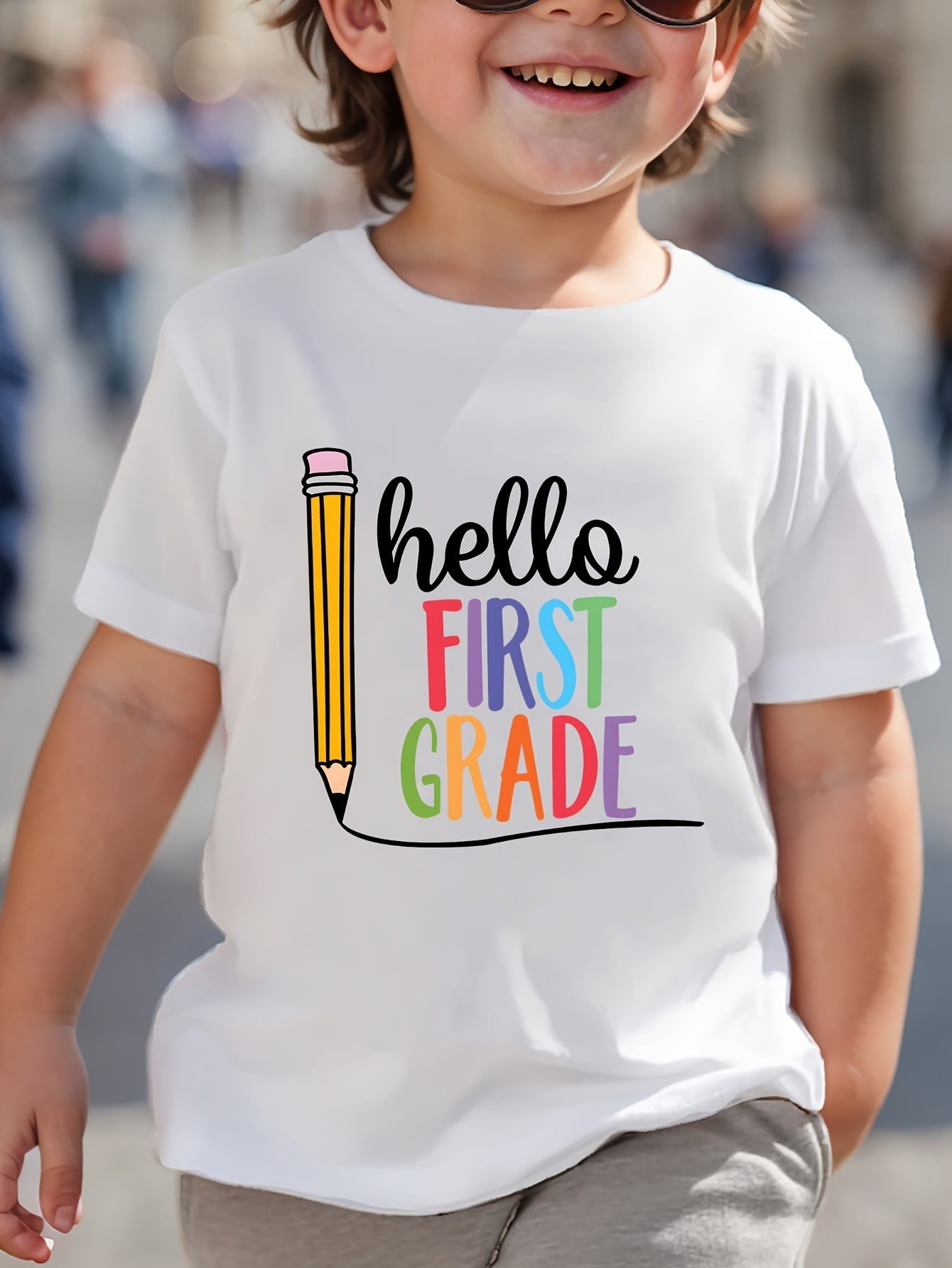 Boys' First Grade Pencil Print T-Shirt - Colorful "Hello FiRST GRaDe ...