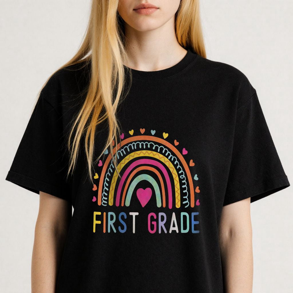 Colorful Rainbow Graphic for First Graders Fun School themed Casual Tee ...
