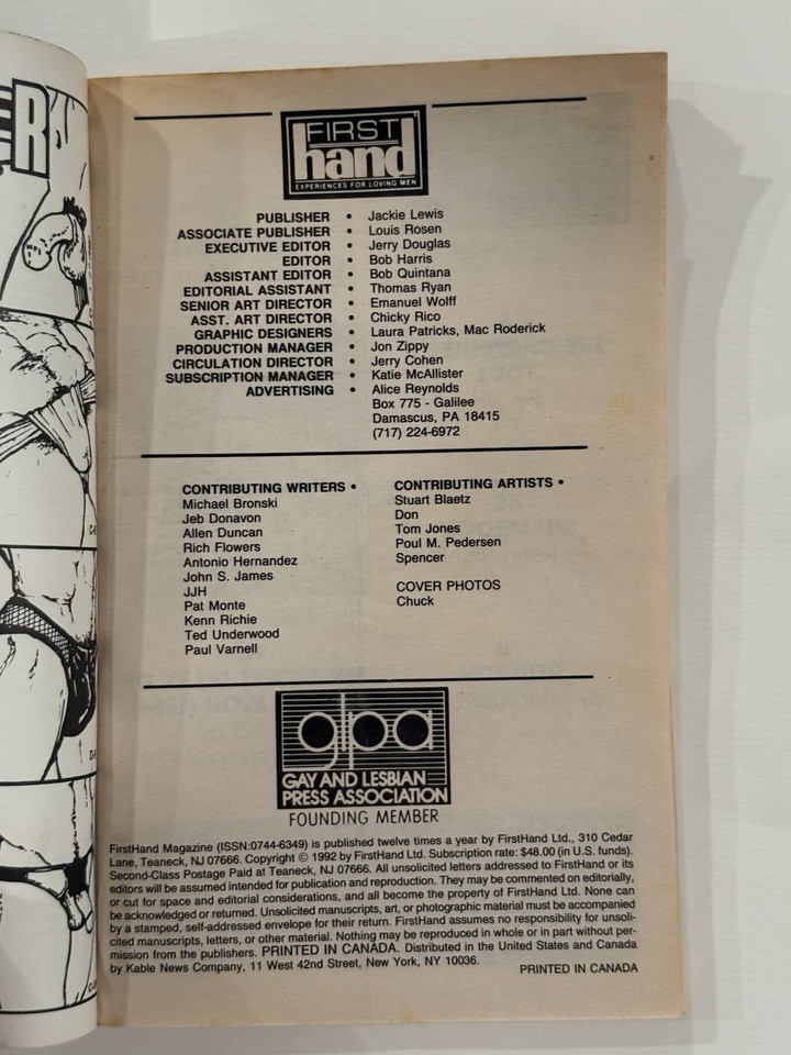 First Hand Magazine March 1992 Gay Fiction Stories Men Erotic Art | eBay
