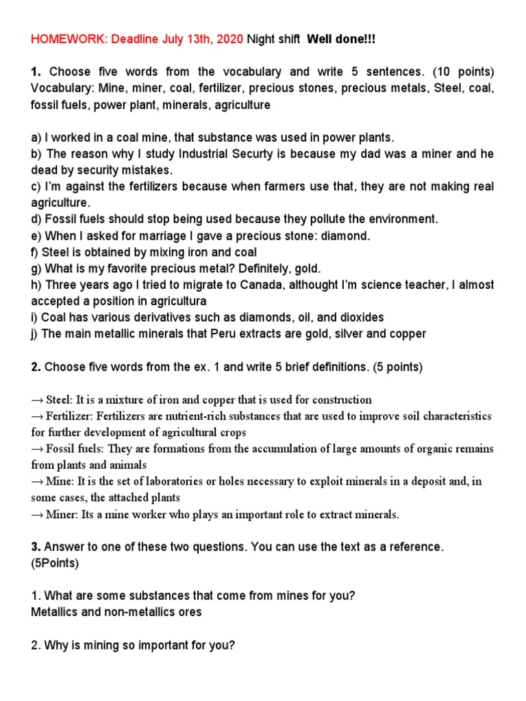 1st Homework English Class | PDF