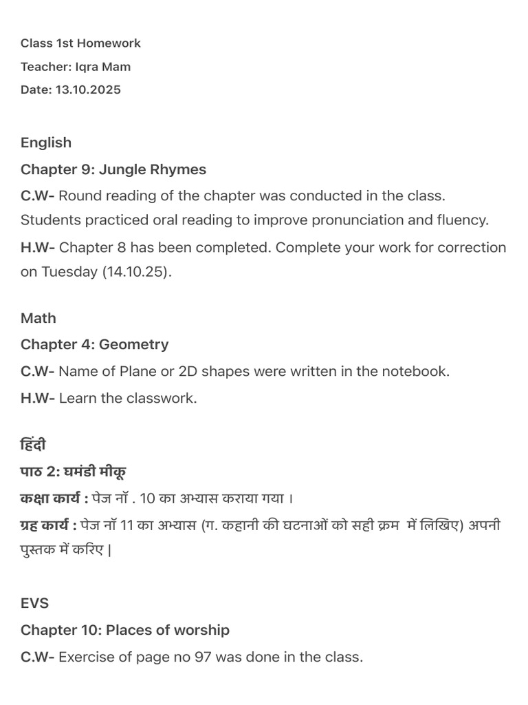 Class 1st Homework-99 | PDF