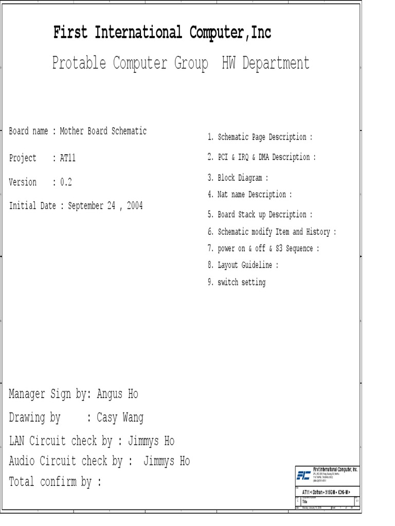 Protable Computer Group HW Department: First International Computer ...