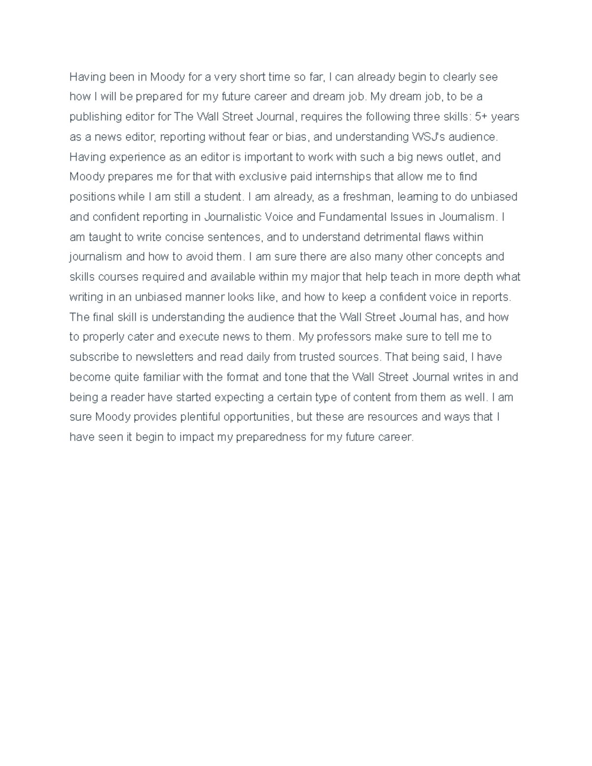 Dream Job Reflection - Having been in Moody for a very short time so ...