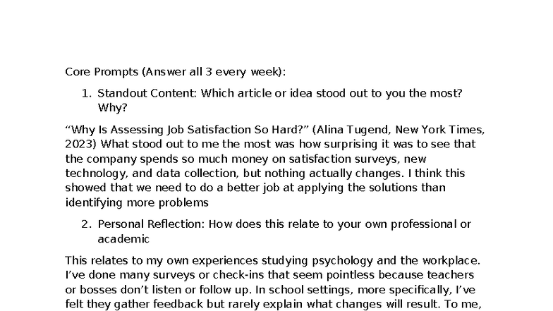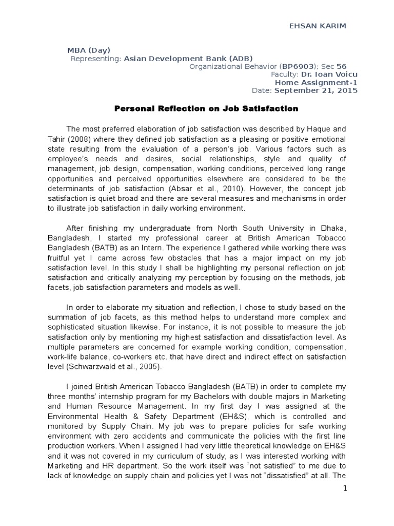 Personal Reflection On Job Satisfaction | PDF | Job Satisfaction ...