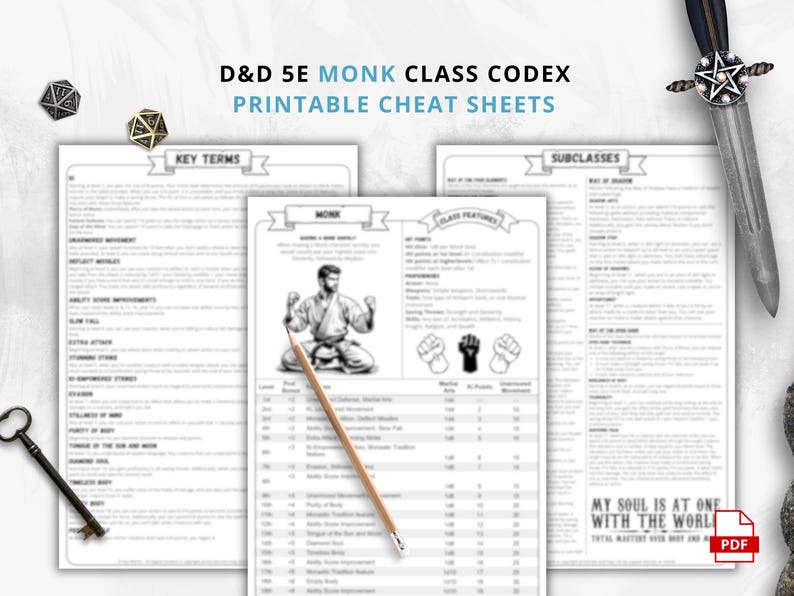 D&D 5e Monk Class Cheat Sheet: Character Creation Guide (PDF Download ...