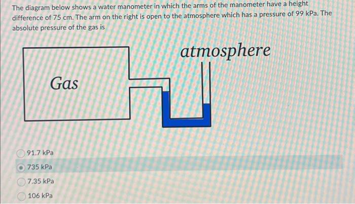 Solved The diagram below shows a water manometer in which | Chegg.com