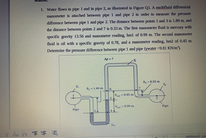 Solved 1. Water flows in pipe 1 and in pipe 2, as | Chegg.com