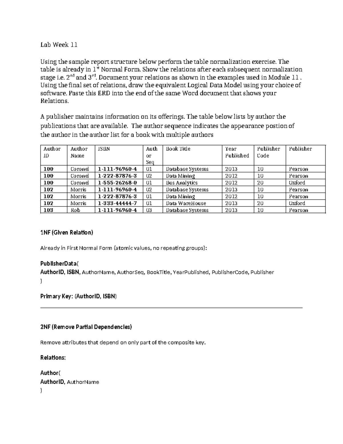 Lab Week 11: Table Normalization and Logical Data Model - Studocu