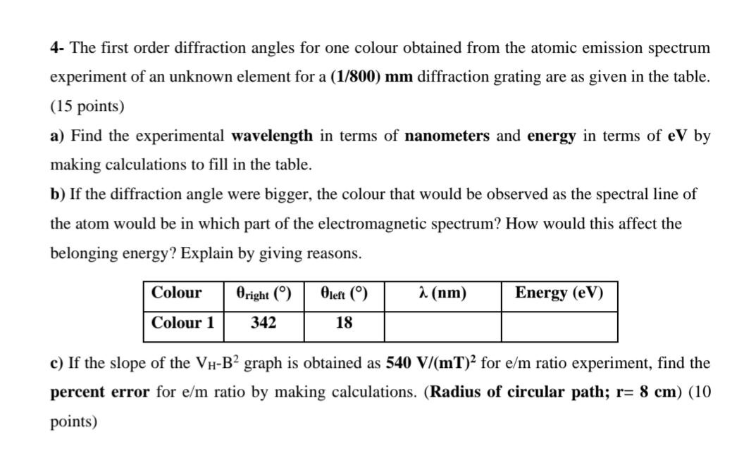 Solved 4- The first order diffraction angles for one colour | Chegg.com