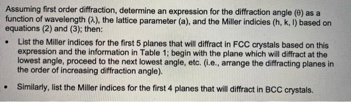 SOLVED: Using Bragg's law, calculate the diffraction angles (2θ) for ...