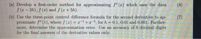 Solved Develop a first-order method for approximating f′′(x) | Chegg.com