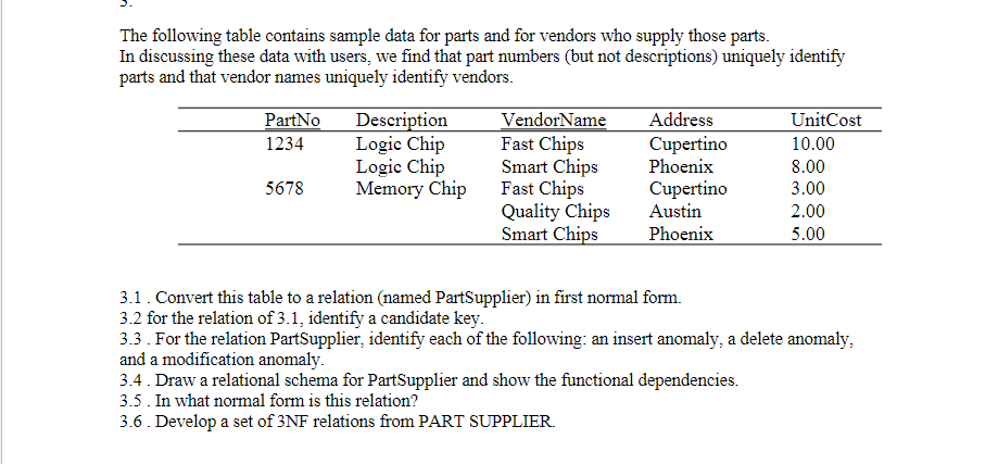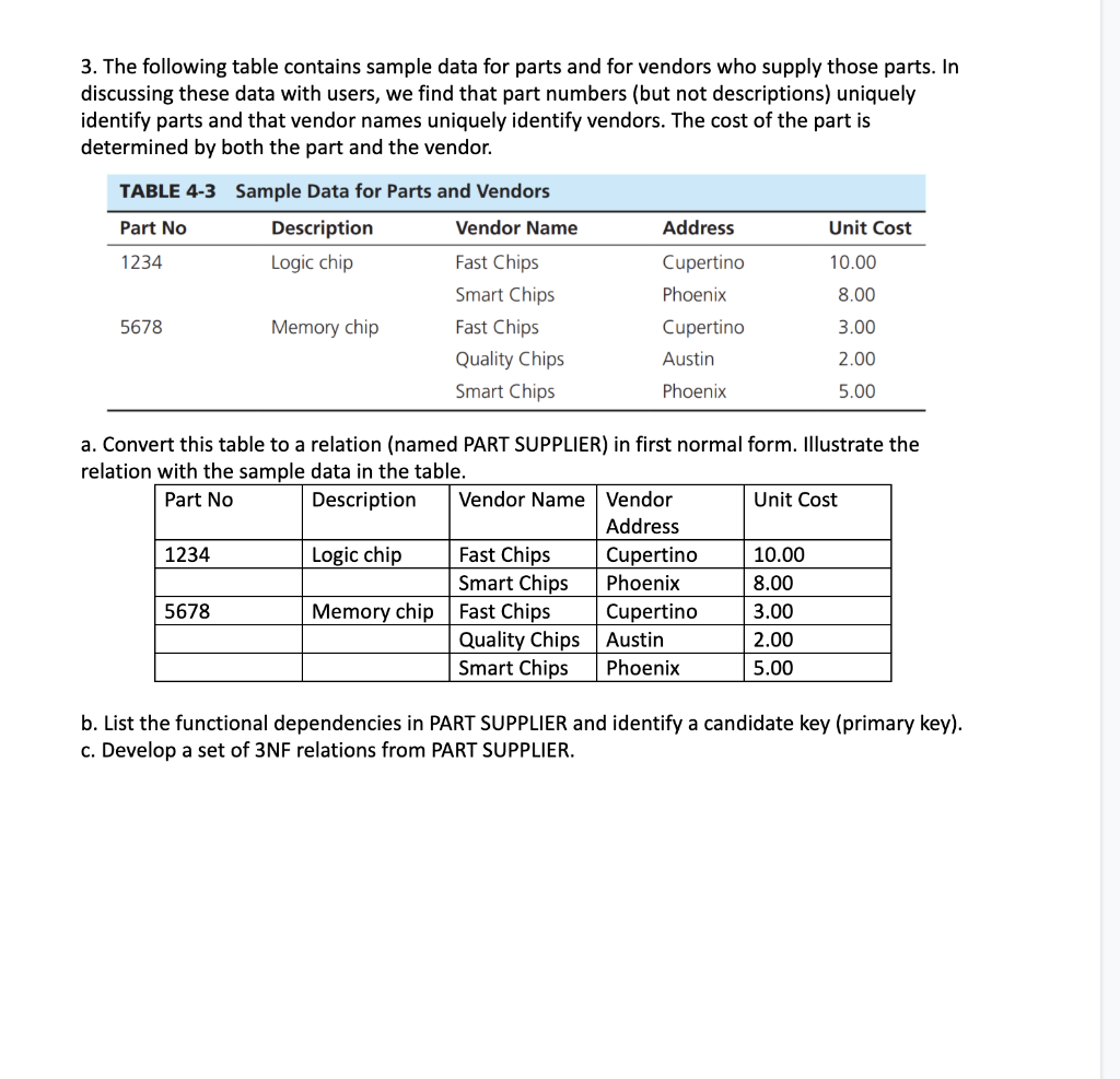 Solved 3. The following table contains sample data for parts | Chegg.com
