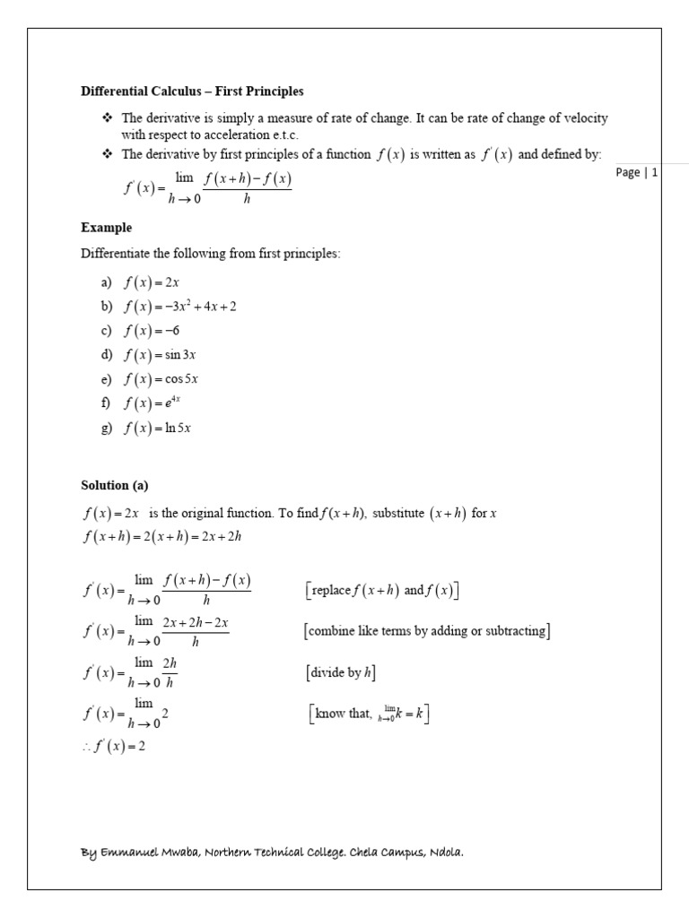 Differential Calculus - First Principles | PDF | Derivative ...