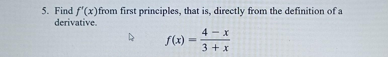 Solved 5. Find f′(x) from first principles, that is, | Chegg.com
