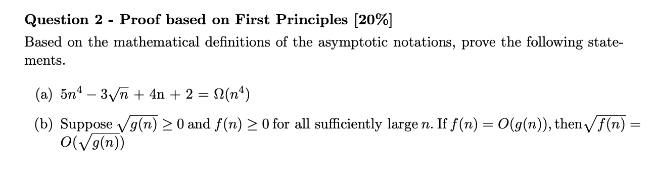 Solved Question 2 - Proof based on First Principles [20\%] | Chegg.com