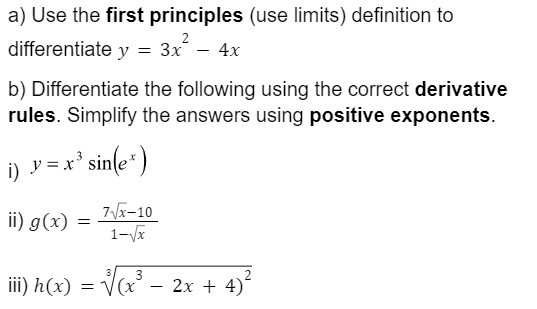 Solved a) Use the first principles (use limits) definition | Chegg.com