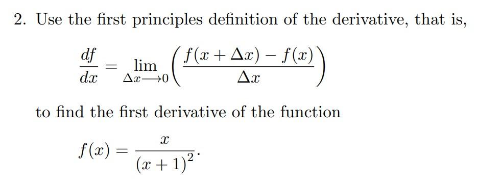 Solved 2. Use the first principles definition of the | Chegg.com