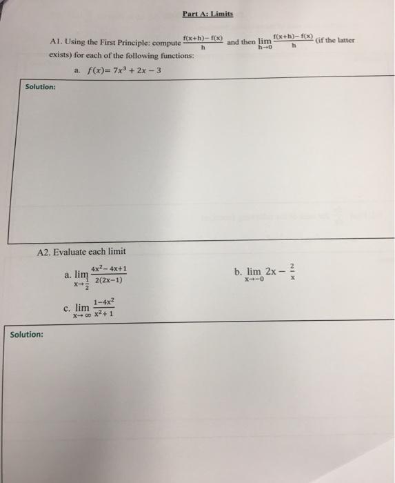 Solved Part A: Limits Al. Using the First Principle: compute | Chegg.com