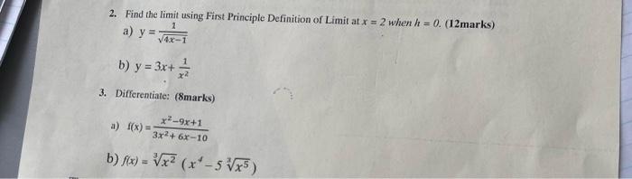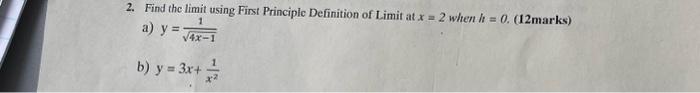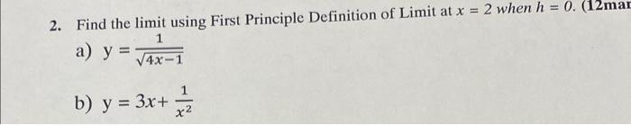 Solved 2. Find the limit using First Principle Definition of | Chegg.com