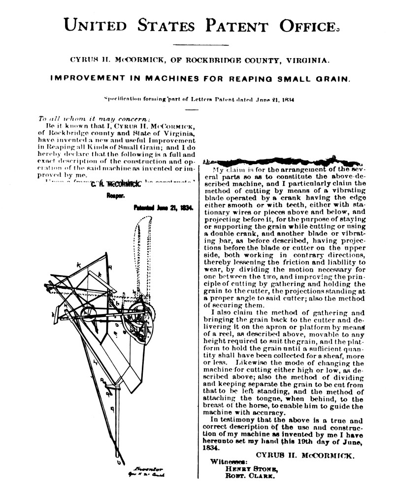 Cyrus McCormick Patents Reaper, 1834 – Landmark Events