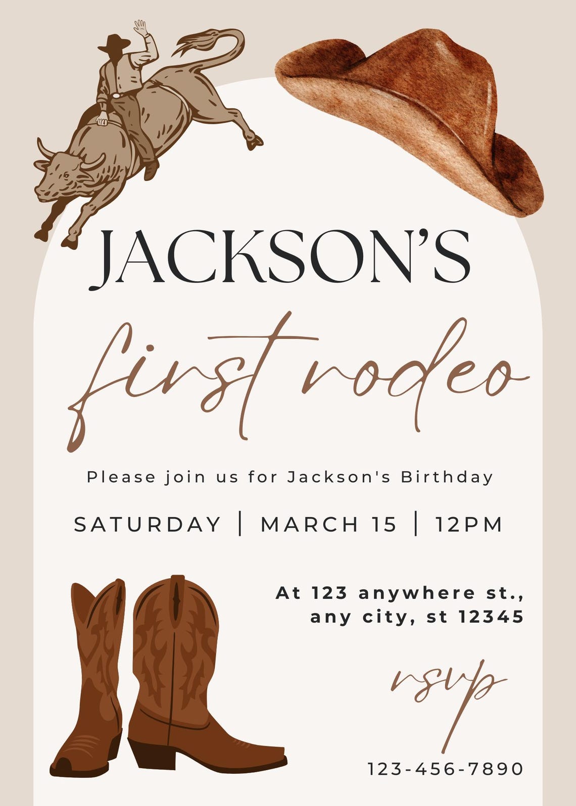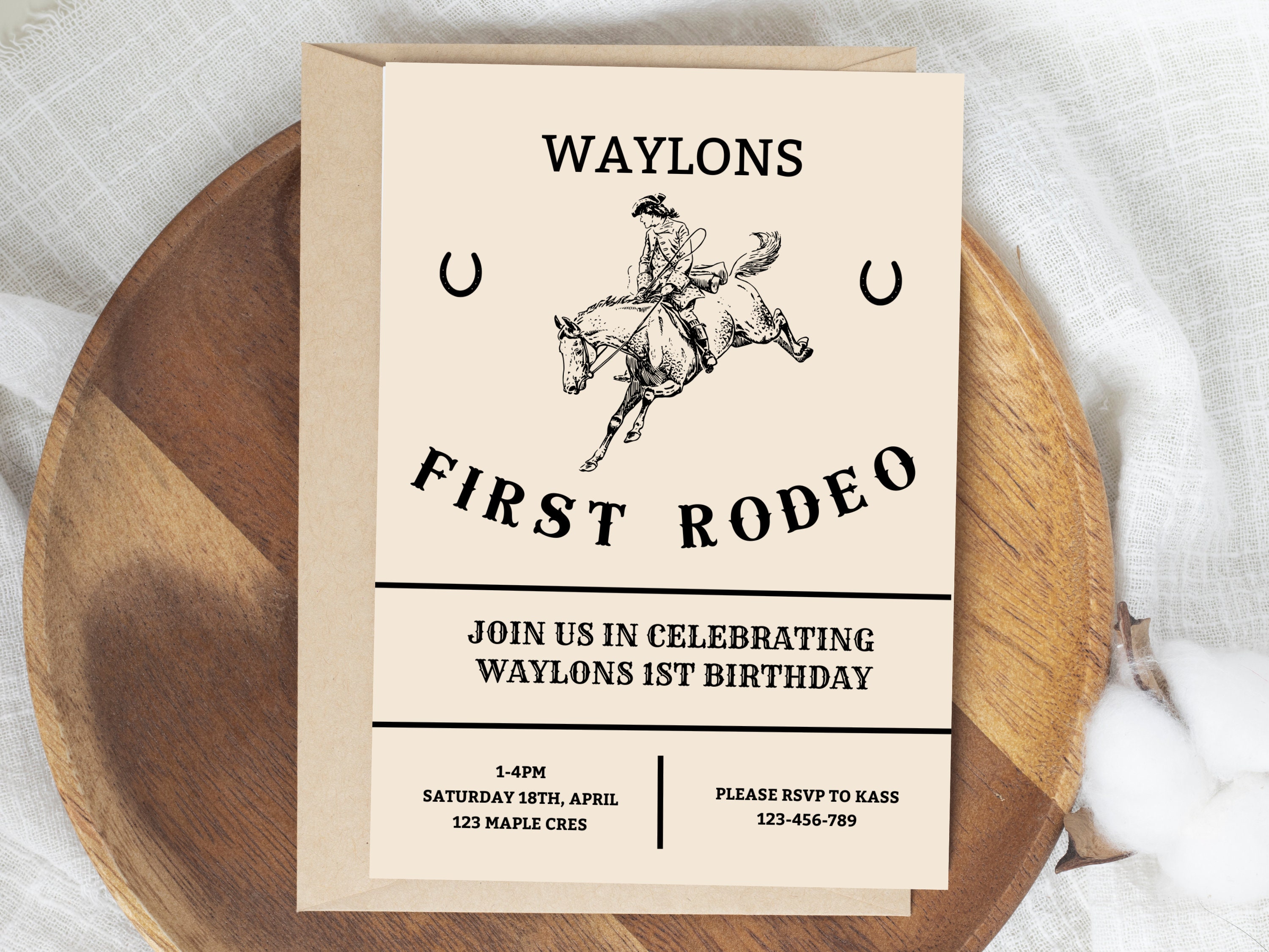 First Rodeo Birthday Invitation, Cowboy Birthday Editable Invite ...