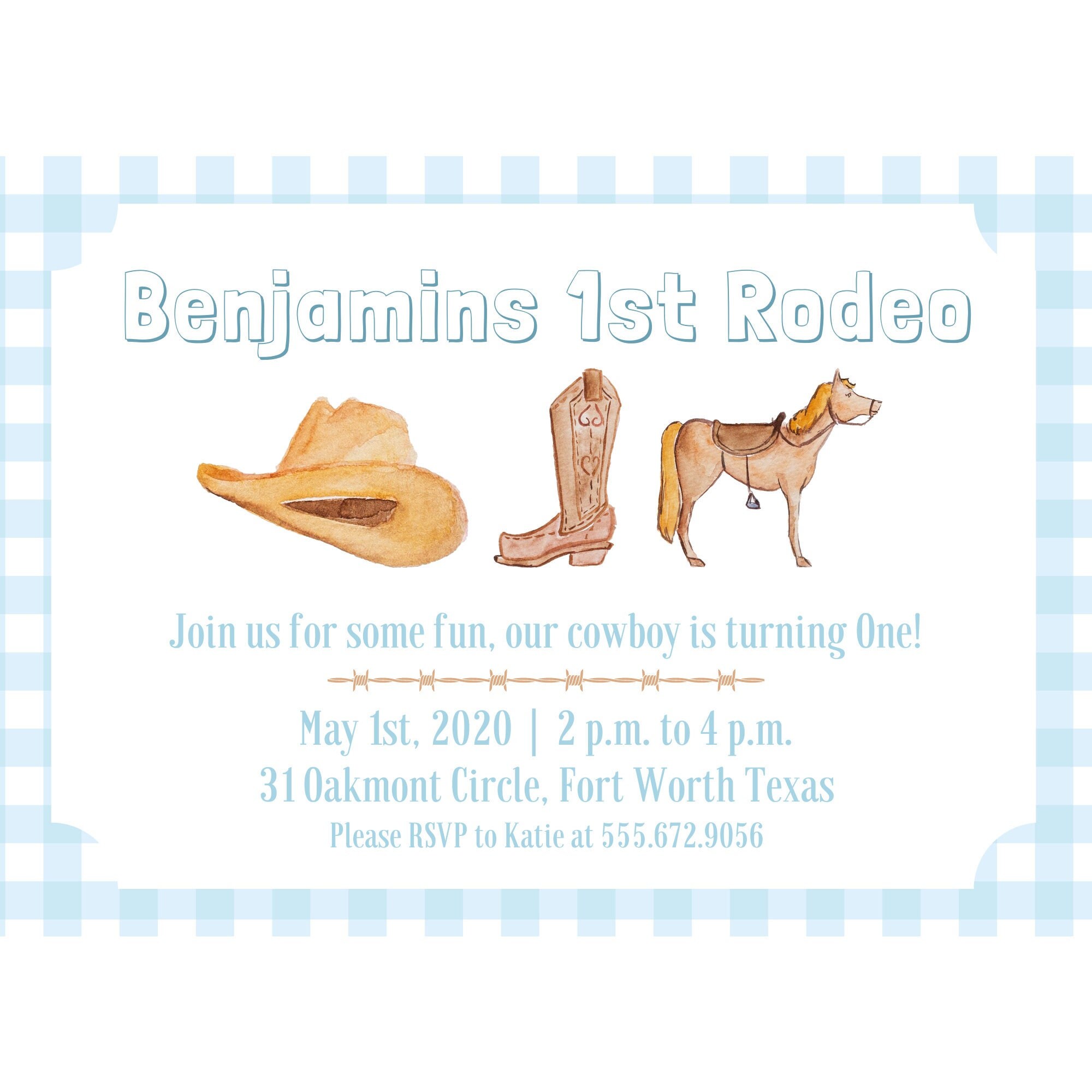 First Rodeo Birthday Invitation, Cowboy Birthday Invitation, Blue ...