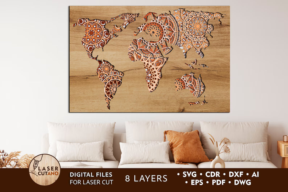 WORLD MAP multilayer Wall Decor Laser Cut Svg File