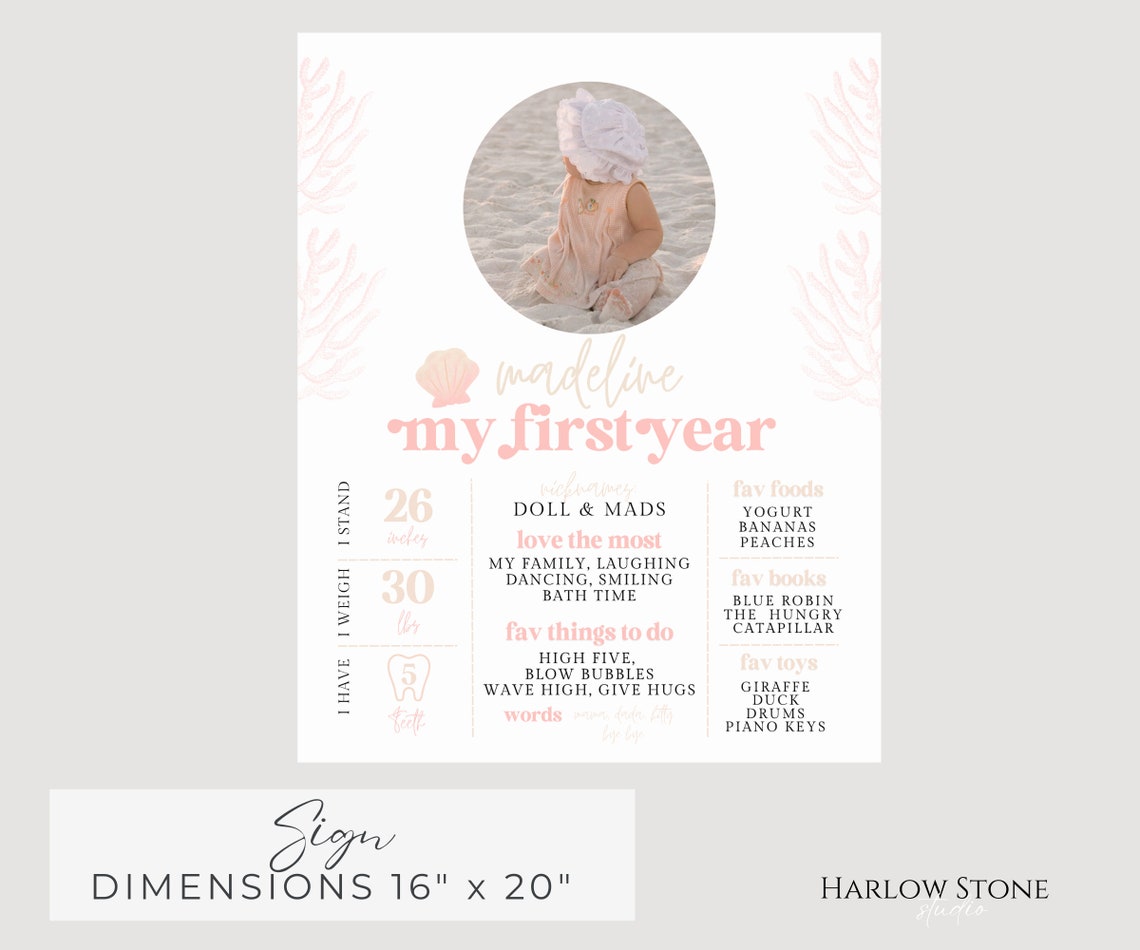 One Year of Photo Board, Baby's First Year Sign, Mermaid Birthday ...