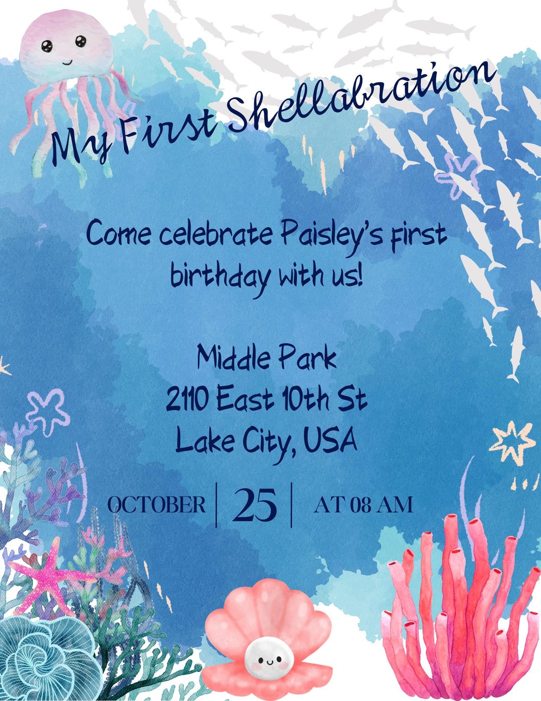 Editable Seashell Birthday Invitation | First Shellabration Canva ...