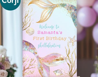 Mermaid Shellabration invitation card for Girl, 1st birthday, editable ...
