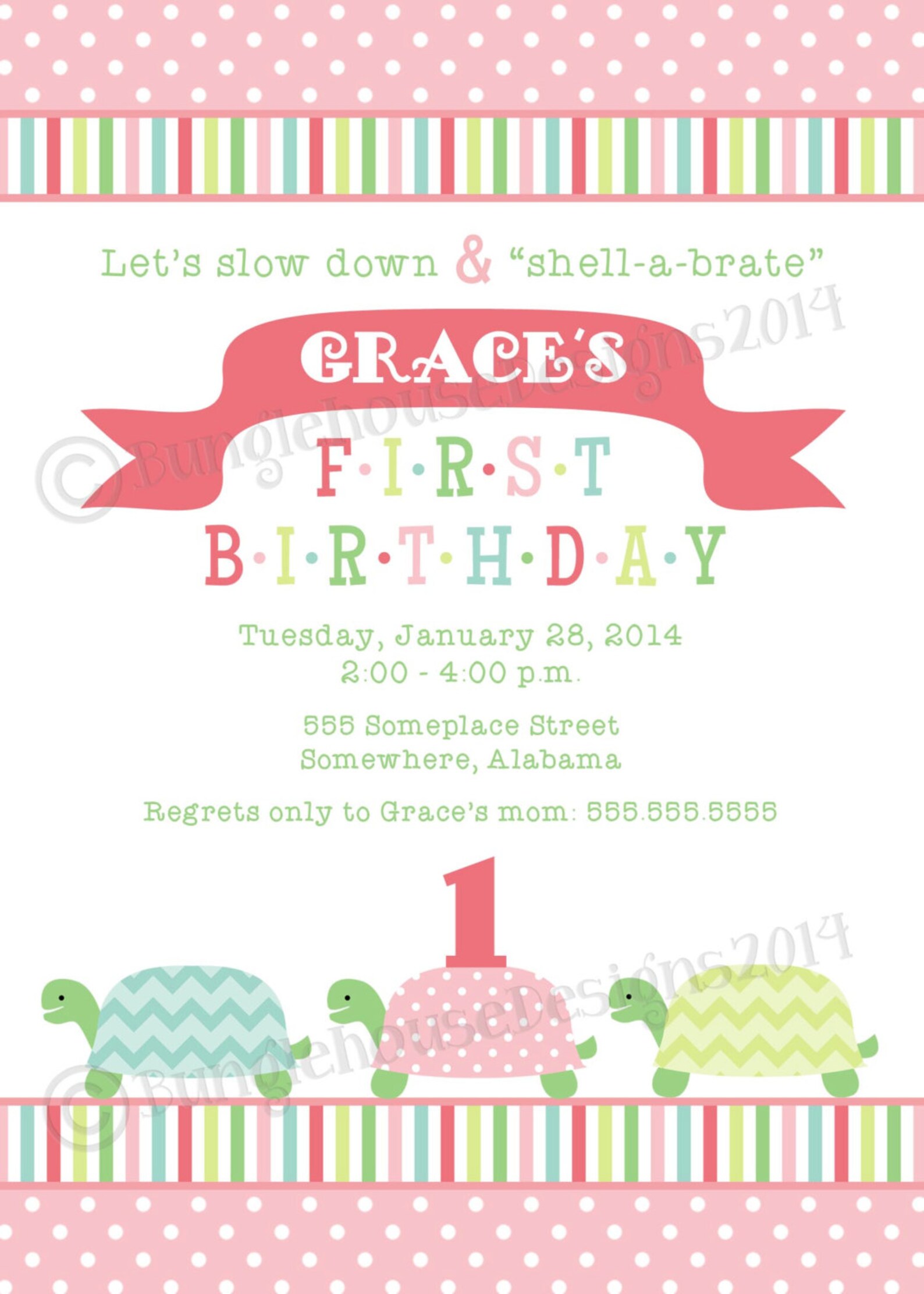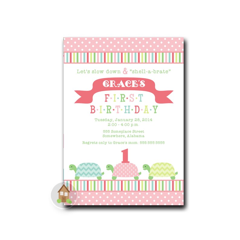 Turtle Birthday | Baby's First Birthday Invitation | Baby Girl 1st ...