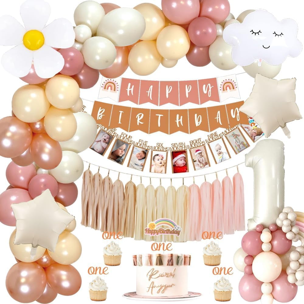 First Birthday Decorations for Girl, Boho 1st Party Decorations with ...
