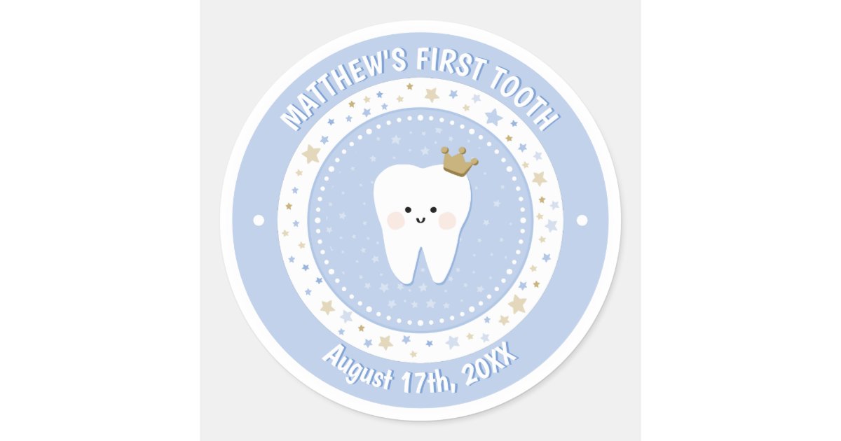 First Tooth party decoration. For baby boy. Classic Round Sticker | Zazzle