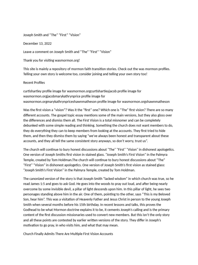 Exposing the First Vision Myths | PDF | Mormonism | Latter Day Saint ...
