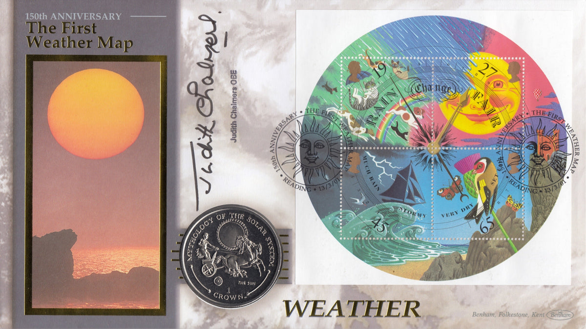 2001 150TH ANNIVERSARY FIRST WEATHER MAP 1 CROWN COIN COVER SIGNED BY ...